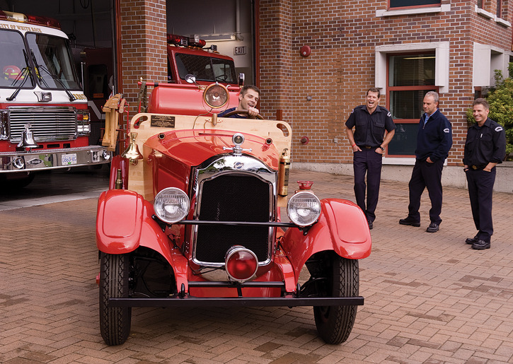 Thirty years after making its last big public appearance at the Spirit of the Sea Festival, the White Rock fire departmentÕs 1925 Studebaker has come home. Firefighters Evan Bird Ed Wolfe and Mike Bancroft with Scott Booth behind the wheel